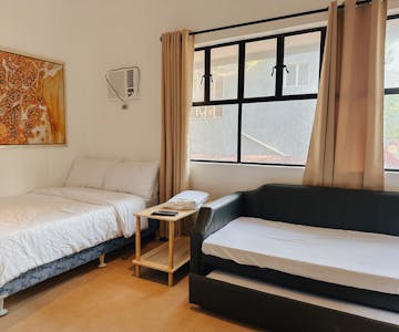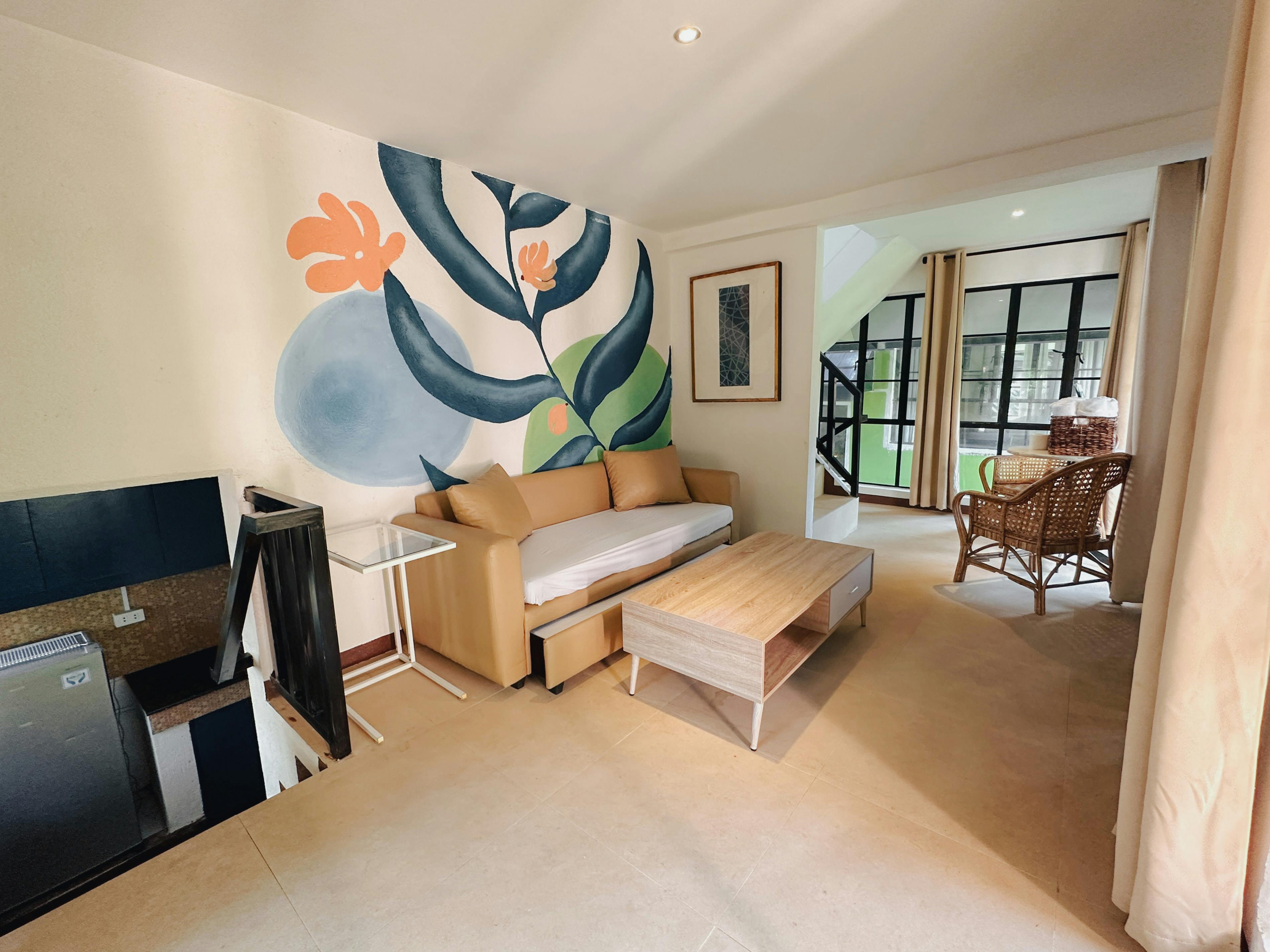 Living room with two bedrooms, two bathrooms and kitchenette. Good for 6. Can accommodate up to 8 pax. Breakfast not included.